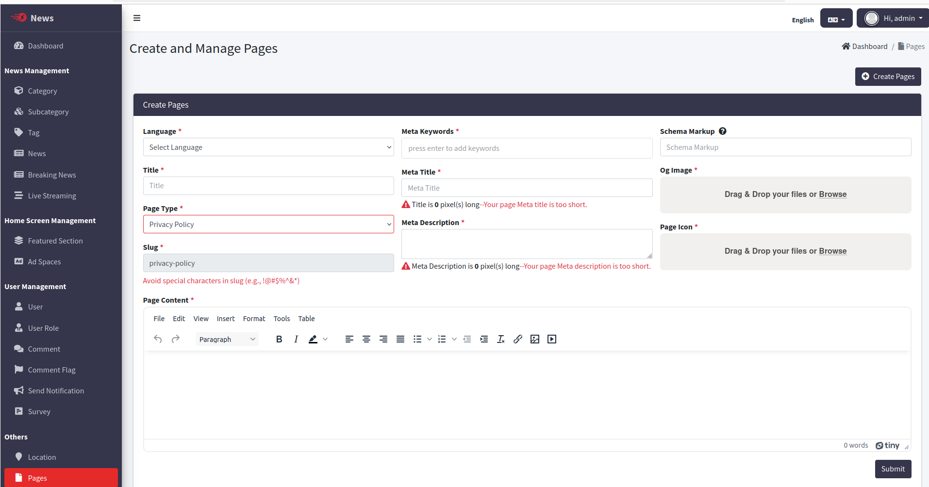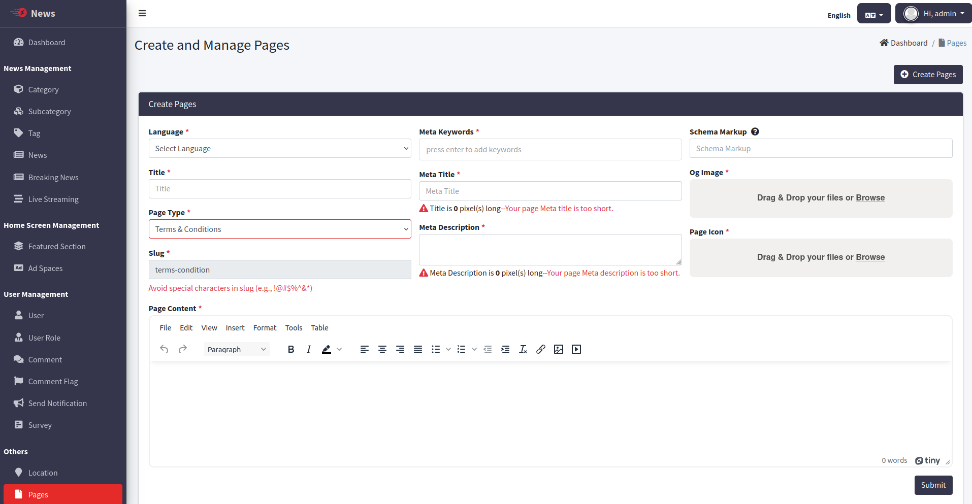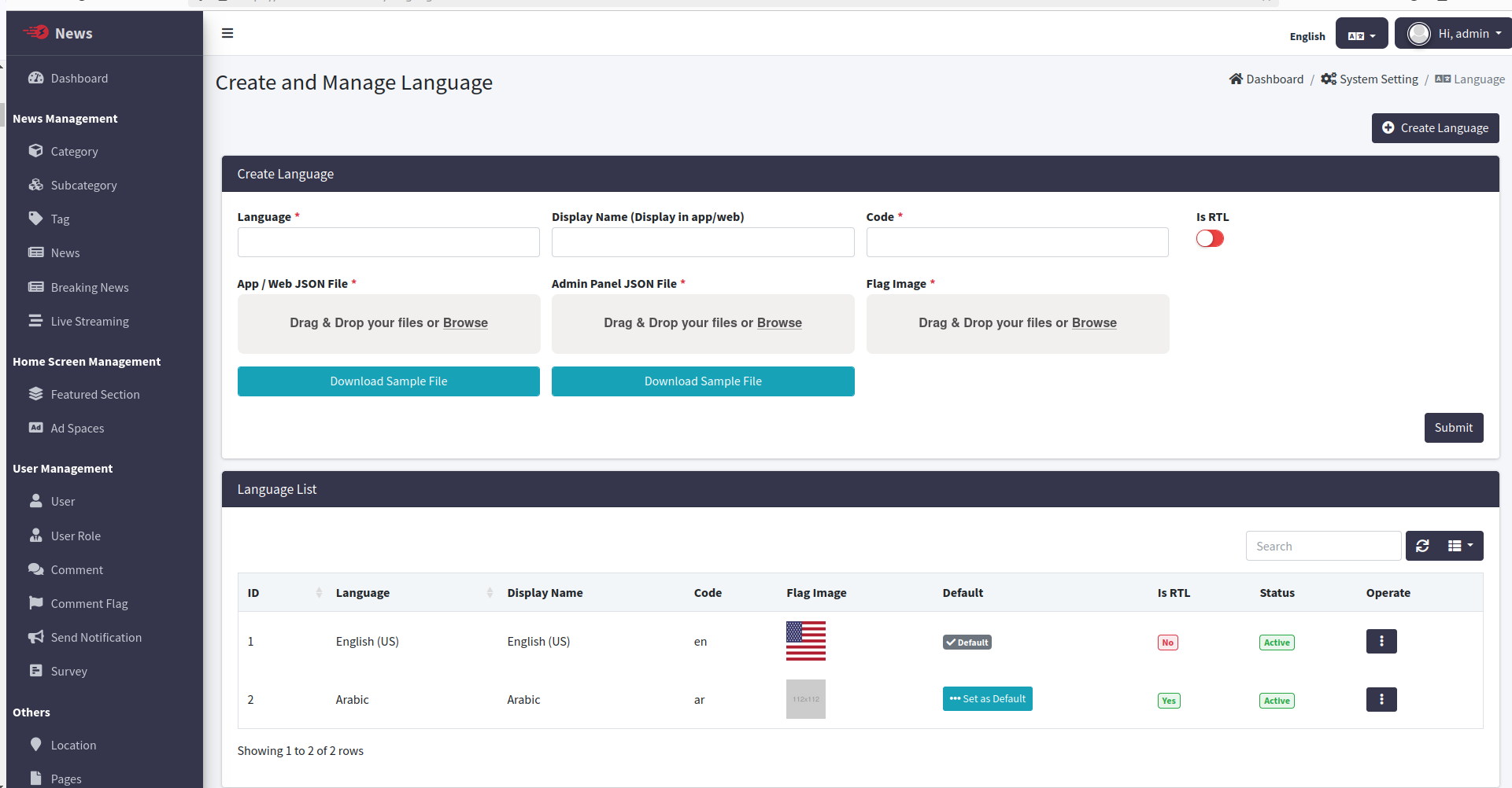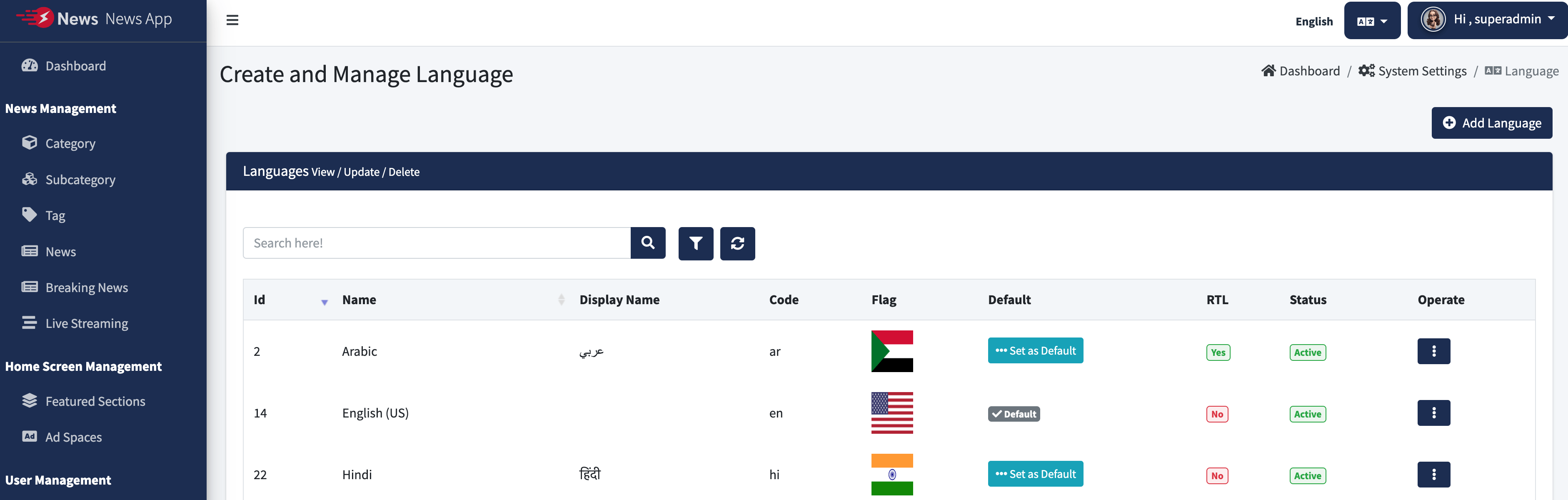 Change the System Timezone, App Name & App Logo of News admin panel. And also Enable / Disable Category, Subcategory, Breaking News, Live Streaming Comments.